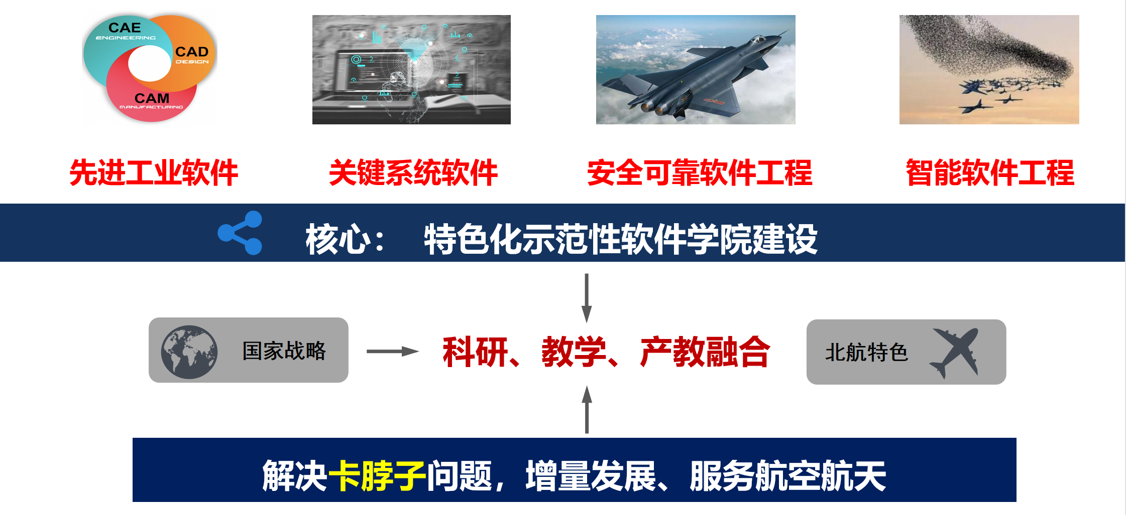 软件是信息技术之魂、网络安全之盾、经济转型之擎、数字社会之基,是引领新一轮科技创新的源动力。北航是我国最早开展软件工程研究的单位之一,w66利来旗舰厅依托软件工程A+学科,聚焦关键软件国家战略发展需要,围绕“特色化示范性w66利来旗舰厅”建设要求,目前已形成先进工业软件、关键系统件、安全可靠软件工程、智能软件工程等特色化学科方向,具备国内顶尖的科研队伍和平台资源,为团队建设、人才培养、产教融合发展奠定坚实基础。