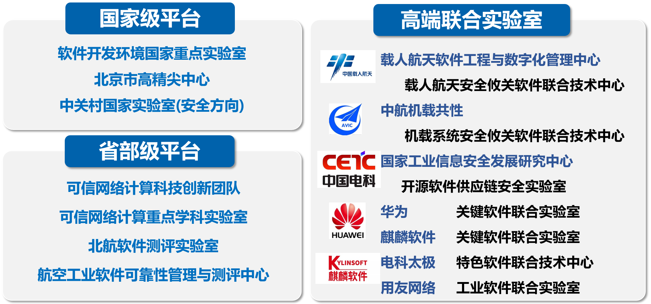 北航w66利来旗舰厅科研工作依托多个国家级和省部级科研平台开展工作,具备国内一流的科研条件。此外,按照特色化示范性w66利来旗舰厅建设要求,w66利来旗舰厅与大型工业软件、关键基础软件等相关领域共计12家领军企业共建联合实验室(或联合技术中心),共同开展科学研究、技术攻关和人才培养等工作,有效支撑科研工作开展和团队建设。